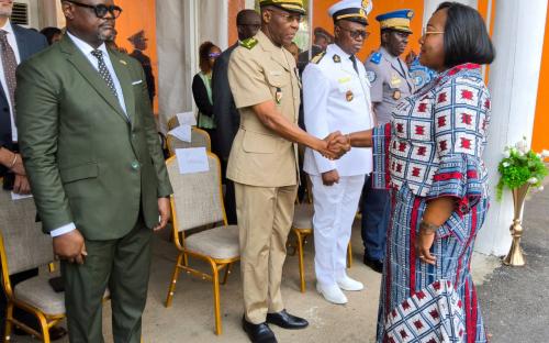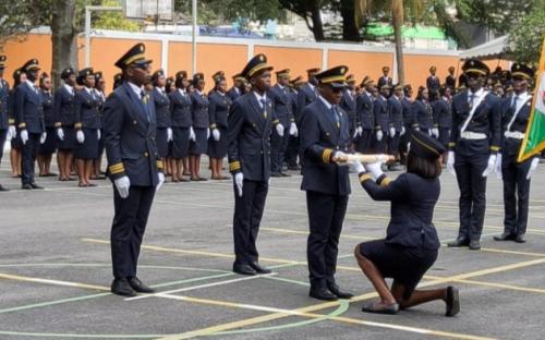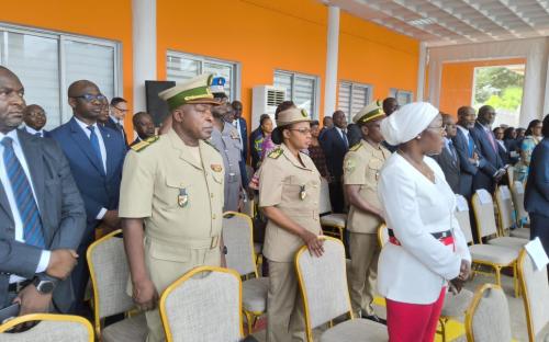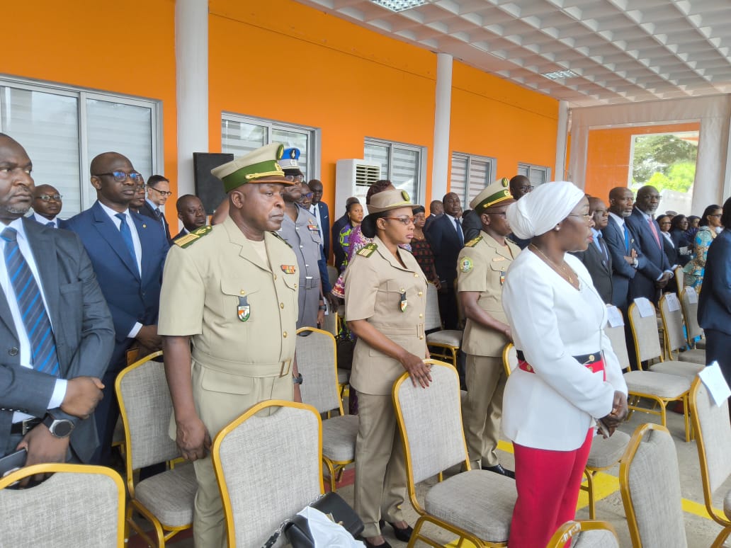 La cérémonie a été présidée par Madame Anne Désirée OLOTO-LAMIZANA, Ministre d’État, Ministre de la Fonction Publique et de la Modernisation de l’Administration. Elle a également enregistré la présence du Directeur Général des Douanes, le Général DA Pierre Alphonse, dont la participation illustre l’intérêt constant de l’Administration douanière pour la formation des cadres supérieurs de l’État.